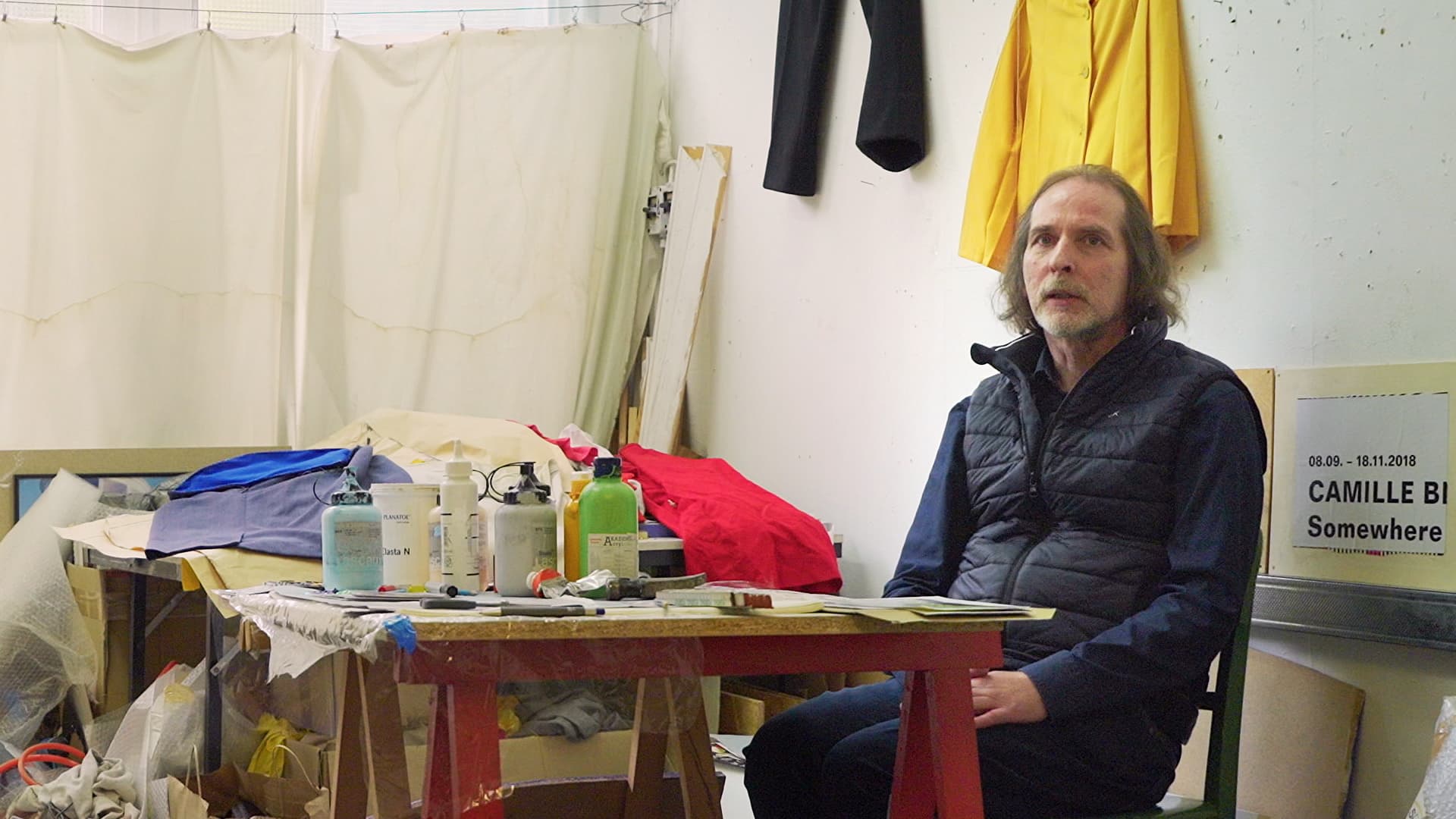 also allows overlooked and disused everyday objects to influence his work, whether a discarded item of clothing or a car windshield. The Städelschule educated painter and sculptor creates his figures with a sense of humour and “paints” using textiles. Monochrome skirts and a denim jacket have been rendered unwearable due to the sewing shut of the relevant openings with similarly colored pieces of fabric.